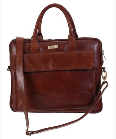 Finished Leather Laptop Bag for 15″ – Slim Business Durable & Stylish Travel & Work Brown Messenger Bag