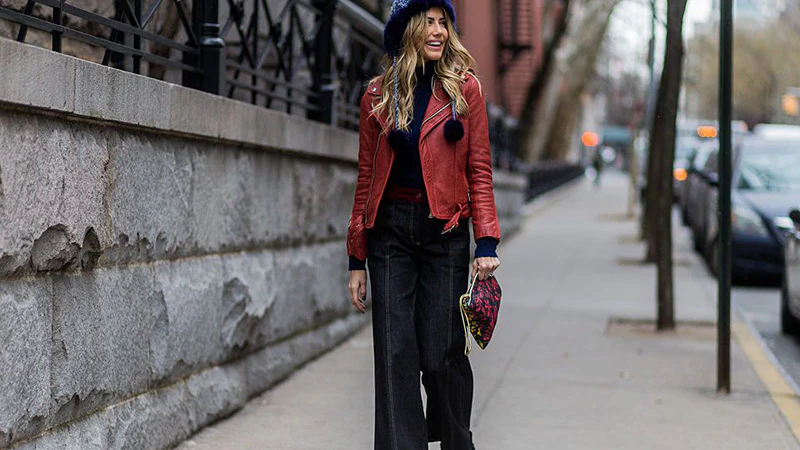 - Pair leather jackets with winter textures like knitwear and scarves